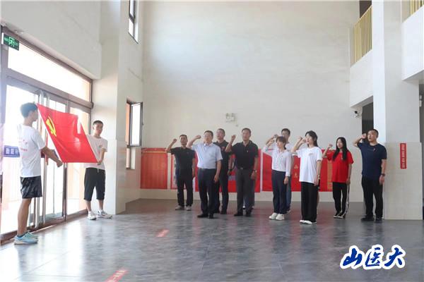 座谈会后,王宏伟带领师生党员重温了入党誓词。师生高举右手,庄严宣誓,表达着听党话、跟党走的坚定信念。