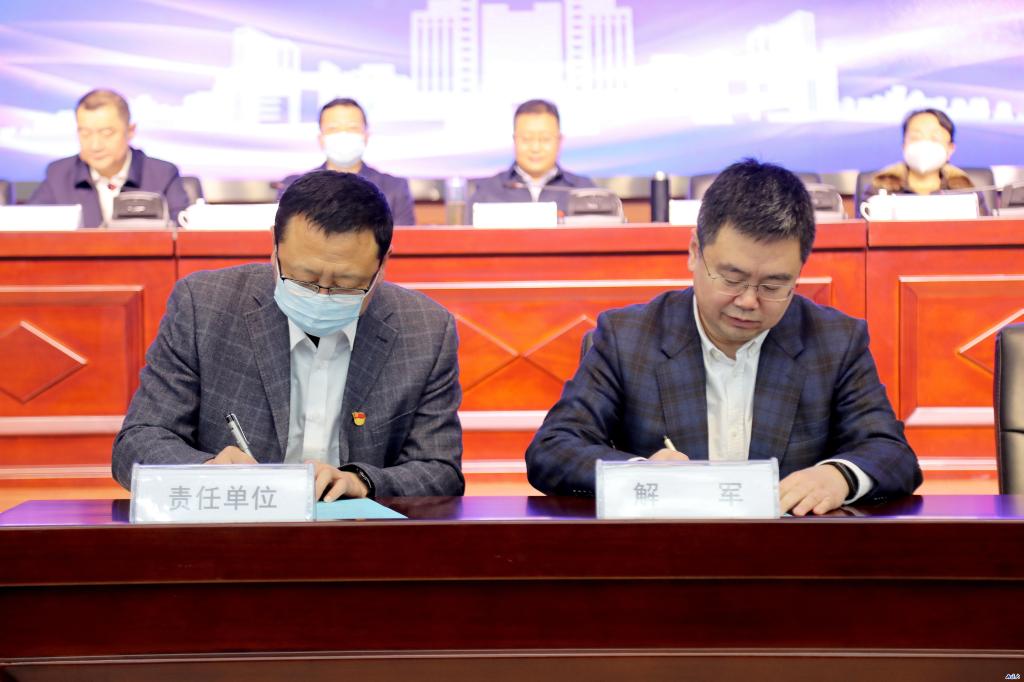 会上,解军与部门、院系代表签订了《社会综合治理目标管理责任书》《消防安全目标管理责任书》。