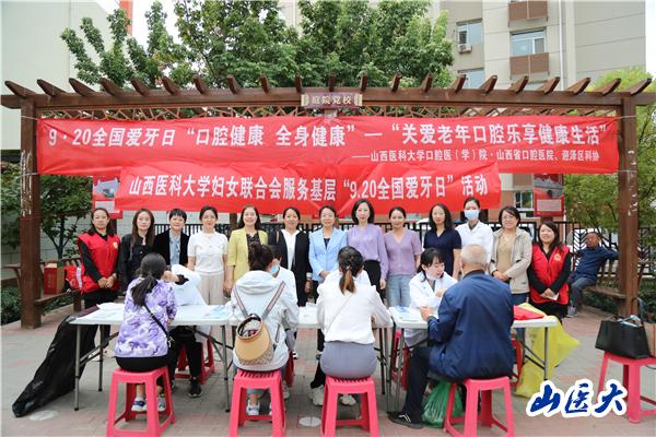 9月20日,我校妇女联合会、口腔医(学)院的部分人员赴太原市迎泽区老军营社区开展了服务基层“9•20全国爱牙日”义诊活动。校党委副书记、校妇联主席彭月兰参加了活动。