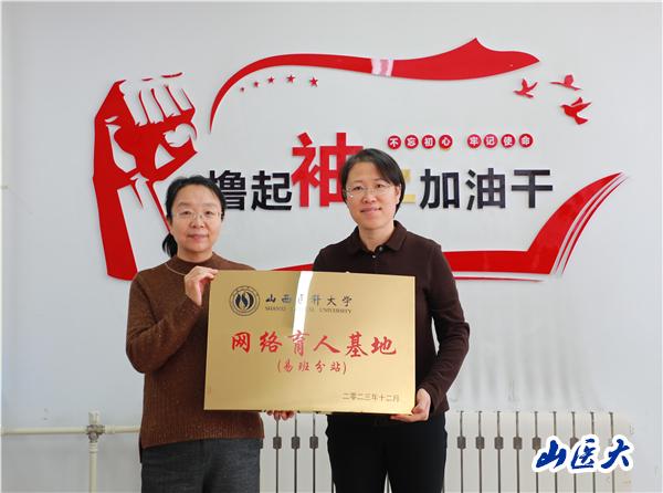 会上,彭月兰为武装保卫部和儿科医学系网络育人基地(易班分站)进行授牌。