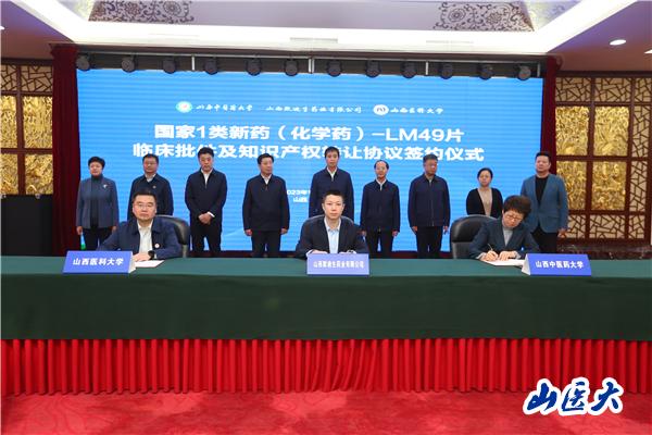 12月29日上午,国家Ⅰ类新药(化学药)——LM49片临床批件及知识产权转让协议签署仪式在太原市丽华大酒店锦绣厅隆重举行,副省长熊继军出席并讲话。省政协副主席、九三学社山西省委主委李青山出席,省政府副秘书长卫英慧、省政协教科卫体委员会主任王立业、省工业和信息化厅厅长潘海燕以及省发展和改革委员会、省科学技术厅、省财政厅、省卫生健康委员会等有关领导到会。签约仪式由省委教育工委书记、省教育厅党组书记、厅长马骏主持。我校党委书记王军、校长解军,山西中医药大学党委书记郝慧琴参加签约仪式。