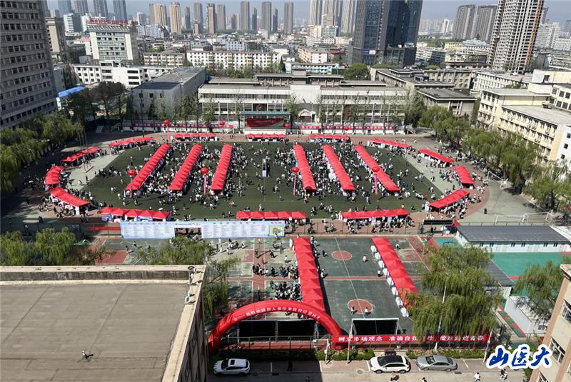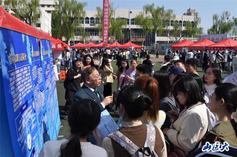 4月12日,我校2024届毕业生校园双选会在迎泽校区举行。此次双选会吸引了来自全国20个省、自治区、直辖市的350余家用人单位前来招聘,共提供13000多个就业岗位,其中医疗卫生单位256家,占比73%,参会的用人单位数和提供岗位数均创历史新高。我校2024届毕业生4500余人参加了招聘会。陕西省卫健委、西安医学院等多地卫生健康行政部门、医学院校、医疗卫生单位组团来校招聘,制定多项引才政策吸引优秀毕业生。