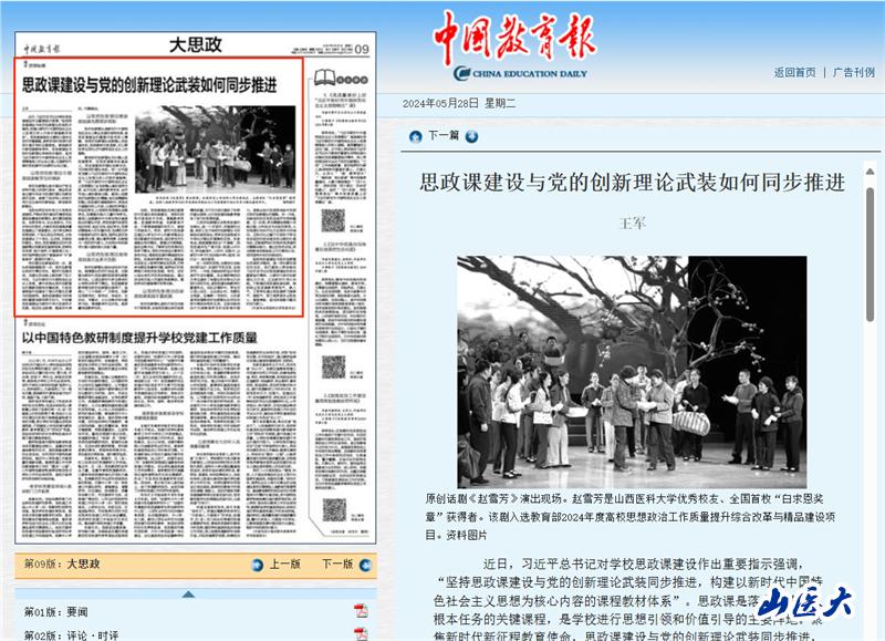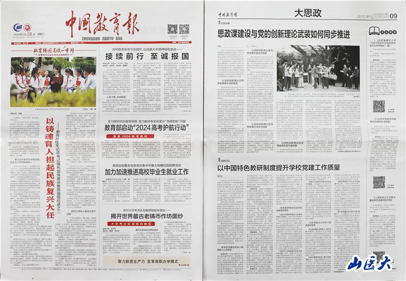 5月28日,《中国教育报》第9版“大思政”版刊发我校党委书记王军的署名文章《思政课建设与党的创新理论武装如何同步推进》。