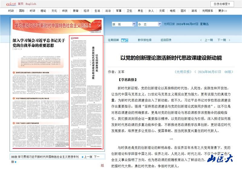 《光明日报》刊发校党委书记王军署名文章《以党的创新理论激活新时代思政课建设新动能》