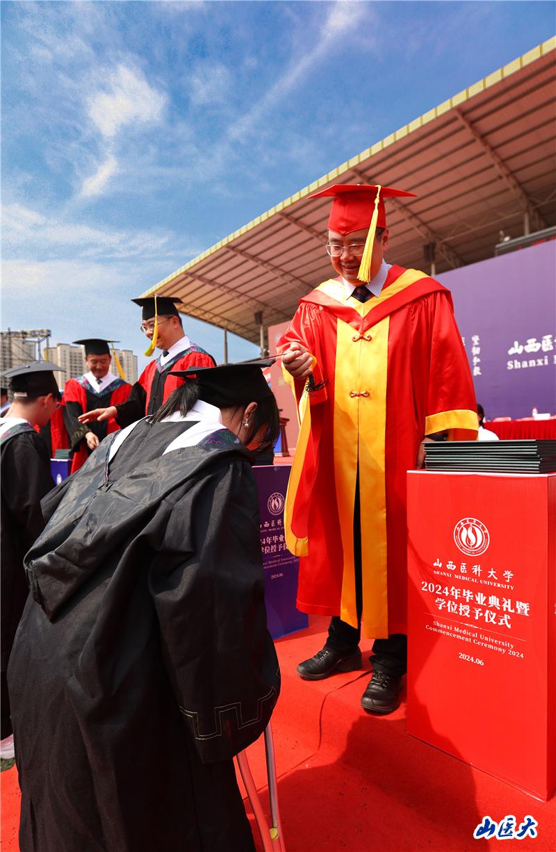 同学们,选择了医学,就是选择了担当,选择了为人民健康事业奉献自己的智慧和力量。在过去几年里,你们孜孜不倦学习专业知识,日日精进锤炼专业技能,用努力和汗水铸就了今日成就。今天,你们身穿毕业服,脸上洋溢着自信与期待,这是你们人生中一个重要的里程碑,是你们医学职业生涯又一个新的起点。面对即将交到你们手里的接力棒,许多同学已经给出了自己的选择。你们中有热忱如炬的圆梦人,迈进顶尖学府继续深造;你们中有热情如火的追梦者,穿上军装守护万家安宁;你们中有奏响青春最强音的实干者,到基层去,到祖国西部去实现理想抱负。我号召同学们,毕业后奔赴基层、扎根西部,到祖国和人民最需要的地方去,天地广阔、大有可为。