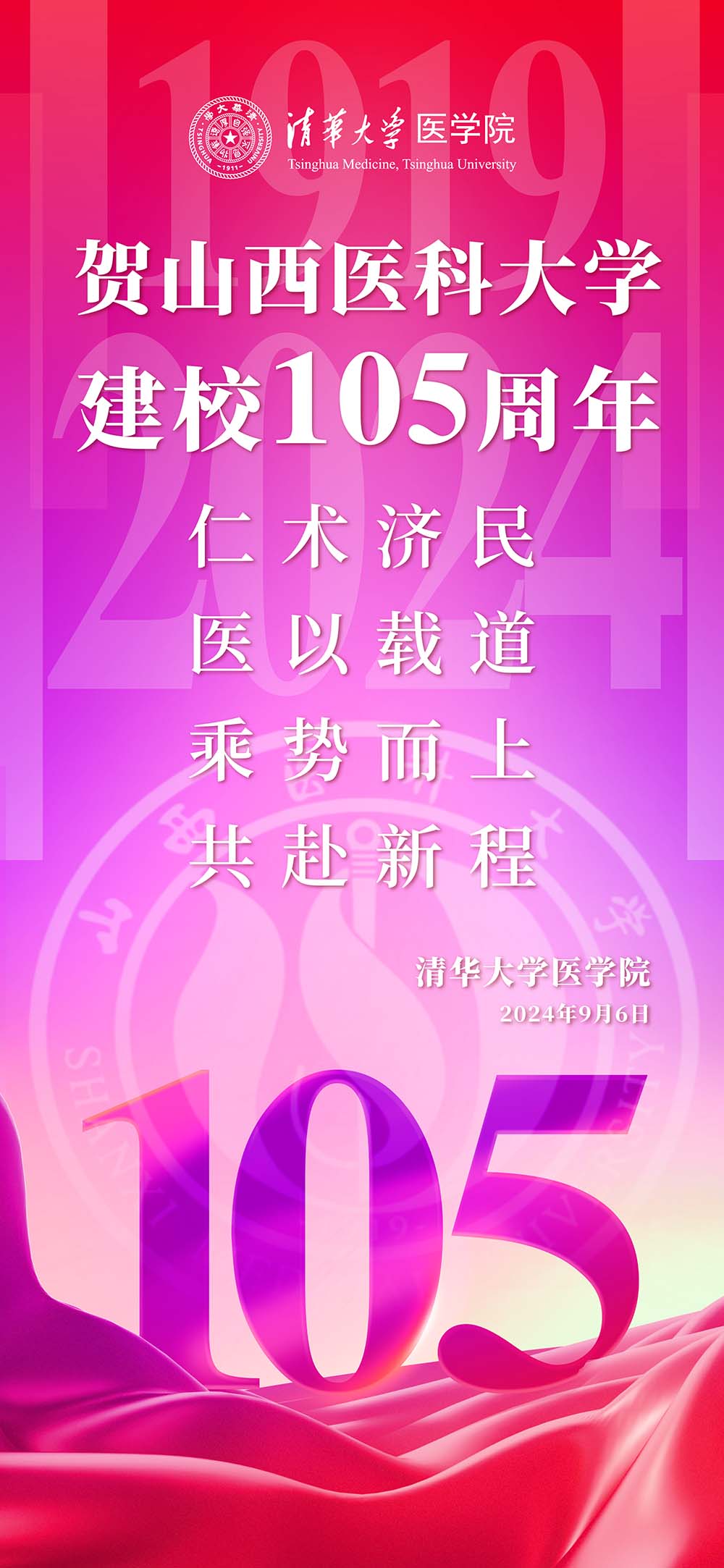 清华大学医学院祝我校105周年华诞