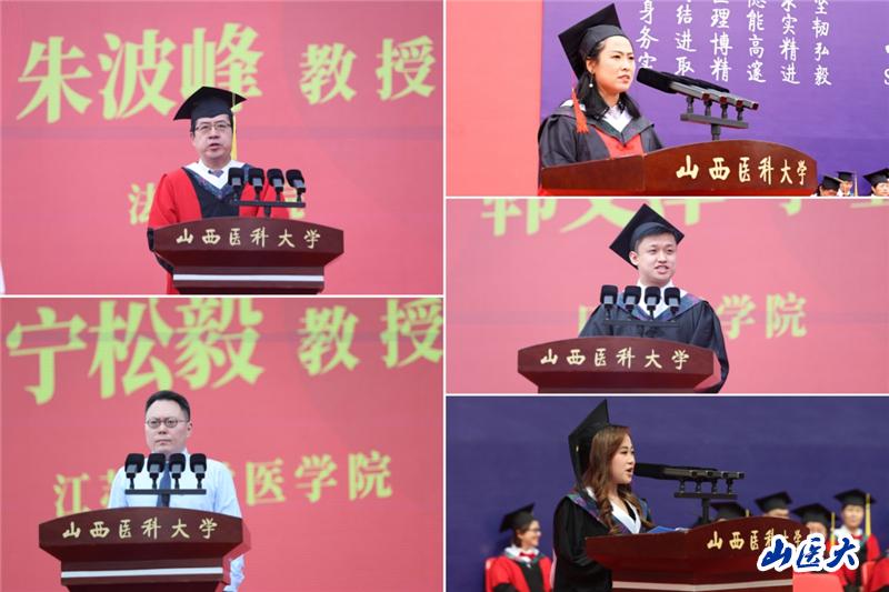 研究生毕业生代表、第一临床医学院卢俊会,本科毕业生代表、口腔医学院韩文泽,国际学生代表、印度尼西亚籍本科毕业生施莲花分别发言,衷心祝愿母校蓬勃发展,再创辉煌。