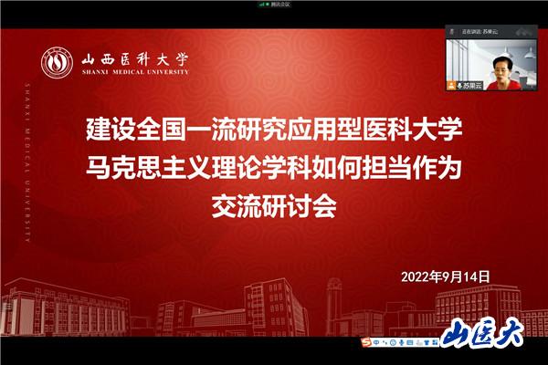 9月14日下午,马克思主义学院举办“建设全国一流研究应用型医科大学”专题研讨会,围绕“建设全国一流研究应用型医科大学马克思主义理论学科如何担当作为”做了研讨。会议由马克思主义学院院长苏果云主持,马克思主义理论学科教师参加。