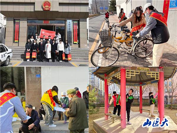 校团委广泛组织各级志愿服务组织和社区进行对接并开展志愿服务活动,校志愿者服务总队、第一临床医学院、第二临床医学院、第三临床医学院、第五临床医学院、基础医学院、法医学院、口腔医学院、护理学院、公共卫生学院、麻醉学院、管理学院、人文社会科学学院、体育教学部等院系志愿者积极走进太原市万柏林区纺织街社区、丽华苑社区、迎泽区解放南路二社区、老军营二社区、小店区平阳二社区、杏花岭区各社区、晋中市榆次区辽阳路社区、安新社区、液铁社区和北部新城高校园区社区、小西沟村党群服务中心、山西省政务中心、太原市晋源区法院、晋中市科技馆等社区和场馆开展义诊、健康知识宣讲、社区和街道环境维护、急救知识培训、文档整理以及残疾人、孤寡老人、空巢老人和孤残儿童帮扶和困境青少年心理疏导等志愿服务,用自己的汗水和爱心传承雷锋精神,续写雷锋日记,用实际行动传播“我为人人、人人为我”的社会文明风尚。