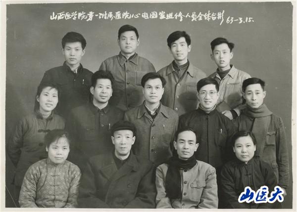 1963年3月15日,山西医学院第一附属医院心电图室进修人员全体合影。第一排右二为李运乾。