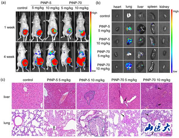PtNPs由于具有良好的热稳定性和较高的光热转换效率,近年来在癌症光热治疗中受到了广泛的关注。PtNPs既可作为光动力和光热疗法的光敏剂,又可作为抗癌药物的载体。尽管目前认为PtNPs具有较好的抗癌作用,但其安全性仍有待评估。该研究发现,PtNPs可干扰血管内皮细胞的内皮钙粘蛋白(VE-cadherin)之间的相互作用,扰乱内皮细胞之间的连接,最终导致血管内皮渗漏,肿瘤细胞从原发肿瘤脱落,通过“内渗”方式进入血管,继而肿瘤细胞经血液循环在远达部位“外渗”出血管进入组织,形成转移灶。