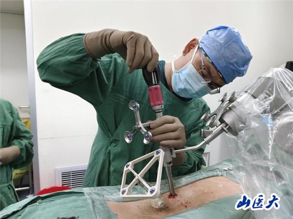 近日,我校第二医院赵斌教授、赵轶波副主任医师团队完成省内首例脊柱机器人导航可视化置钉手术。
