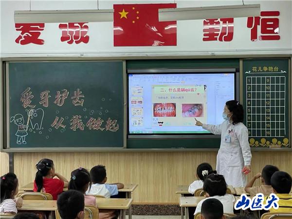 口腔内科还深入大南关小学,开展“爱牙日”科普宣教活动。赵哲副主任医师以图片、动画、知识问答、模型示范等多种形式,生动形象地为小朋友们讲解了龋病形成的原因、有效的预防措施以及科学规范的刷牙方式,普及儿童口腔健康知识,促进少年儿童从小树立科学意识,注重培养卫生好习惯,营造健康有益的成长环境,积极响应学校所开展的校园口腔健康教育活动。