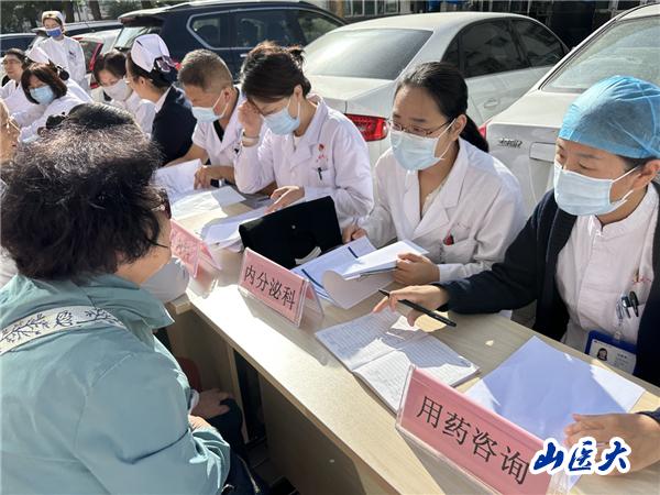一位大爷让心血管内科和高血压科专家看完后说:“我有高血压、冠心病,年纪大了腿脚又不好,今天山医大一院专家来家门口给我们免费看病,为我调整了药物,我太高兴了,感谢专家!”健康管理科的医疗专家为大家认真解答健康体检报告中的各种问题;伤口护理专家手把手教给居民一些护理技巧,并耐心地把自己临床护理工作中的经验传授给居民。药学专家为居民提供老年人及慢病用药、中药安全用药、药物不良反应、心血管疾病用药、肝肾功能不全及妊娠、哺乳、小儿合理用药等诸多药学科普宣教,深受居民欢迎。