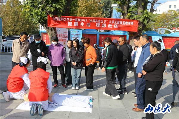 前来参加健康咨询和测量血压的群众络绎不绝,副院长韩清华教授、心血管内科主持工作的副主任靳春荣主任医师带领10余名专家在高血压的防治、高血压的危害性、高血压的家庭自测方法等方面进行了详细解答;杨丽洁护士长带领10余名护理人员现场演示了正确的心肺复苏施救方法并讲解了注意事项,通过发放宣传资料、面对面交流等方式,加深了大家对高血压的防治常识及健康生活方式的认识。