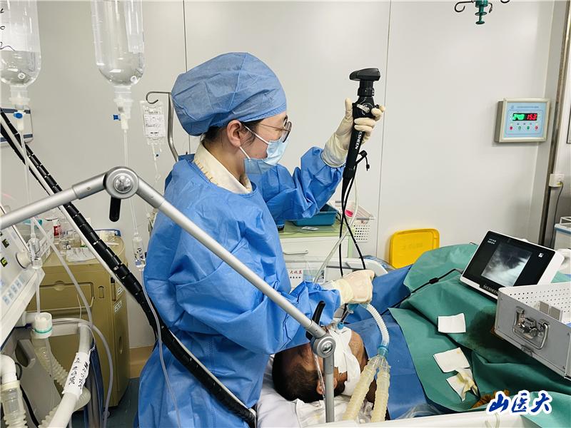 2023年12月4日晚,该名因车祸致全身多发伤患者由急诊转入重症医学科三病区,主管医师孙洁接诊时了解到患者于11月24日在外地发生车祸,因治疗效果不佳,焦急万分的家属抱着一线希望辗转将患者送到我校第二医院,期望能够挽救患者的生命。经过检查,发现患者情况比想象的还要复杂,神志虽清楚,但喘息明显,咳嗽、咳痰能力极差,鼻导管+面罩双吸氧下,血氧饱和度约90%,听诊双肺右肺呼吸音极弱,急查血气分析示PO2仅56.2mmHg,胸部CT提示严重双肺感染。如果重症肺炎不加以控制,气管插管概率很高,早期行下肢骨折手术治疗更无法提上日程。