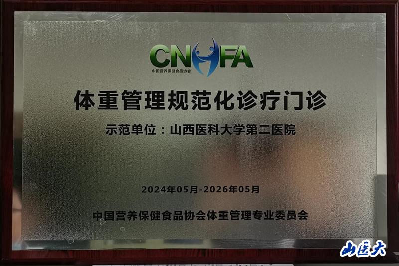 我校第二医院荣获"体重管理规范化诊疗门诊示范单位"称号