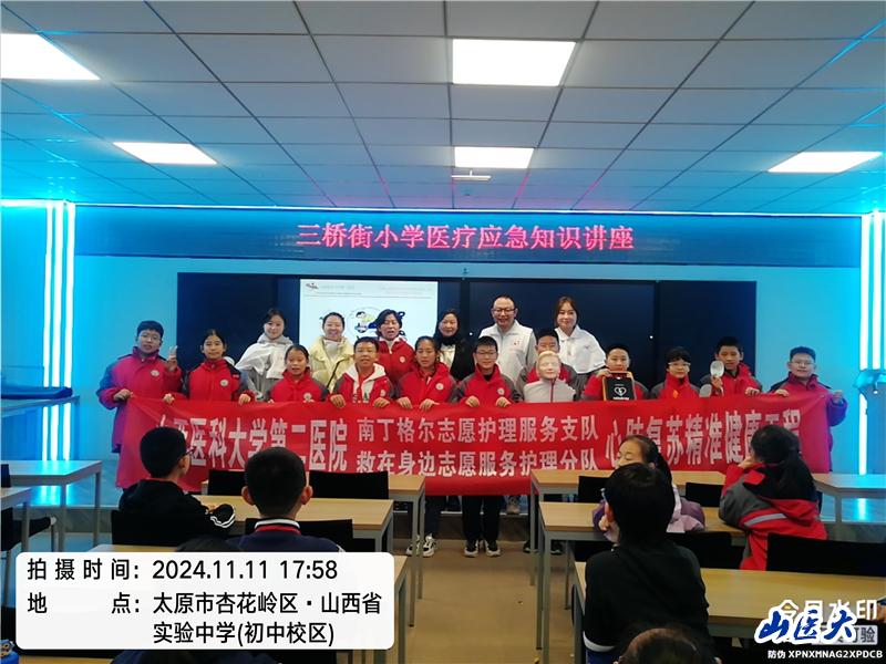 11月11日,我校第二医院急诊科走进三桥街小学,为六年级学生带来了一场生动而又实用的关于生命安全教育的急救知识科普。科普内容包括心肺复苏术(CPR)、自动体外除颤器(AED)的使用以及海姆立克急救法,旨在提升高年级学生在紧急情况下的急救能力。