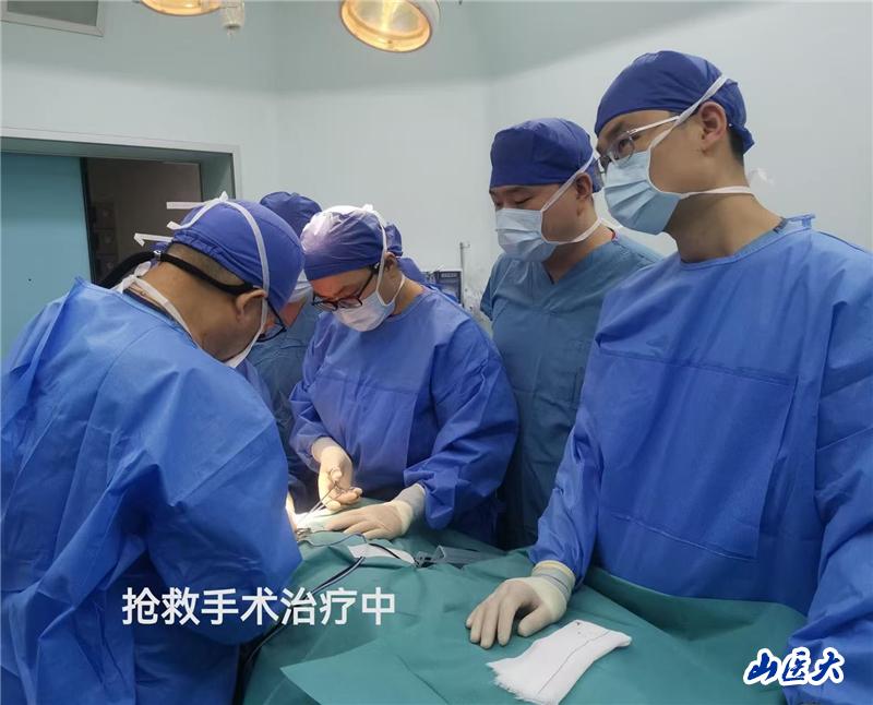 胸外科武杰医生迅速做胸腔闭式引流处置血气胸,麻醉科刘倩医生诱导麻醉插管,8点20分,手术开始了,医生被眼前所见震惊了,颈部外伤伤口呈不规则,其中颈部伤口深到上纵隔,甲状腺损伤,甲状腺下动脉破裂出血,气管与上纵隔血管丛出血,气管环三处被捅伤破裂,食管也损伤,胸膜顶损伤致血气胸、胸导管破裂。皇甫辉教授、韩瑞副教授、侯瑞枫与王晨欣医生等密切配合手术,外科手术室护士长马涛洪及器械护士与巡回护士分工协作,迅速结扎血管,双极电凝迅速止血,修复气管、食管与胸导管,同时迅速输入1600多毫升的红细胞和血浆。2个多小时后,血止住了,已经走到死亡边缘上的患者被医务人员拉了回来。