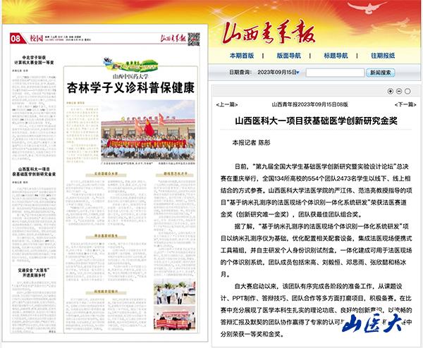 山西青年报 | 山西医科大一项目获基础医学创新研究金奖