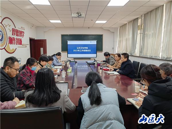 2月14日下午,公共卫生学院在迎泽校区公共卫生大楼三层会议室召开了学院2023年度工作部署会议。学院领导班子、各学科负责人、党办院办老师参加了会议。会议由学院党委书记张志红主持。