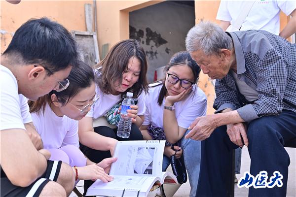 6月24日上午,实践队员集体拜访了西许村老书记、老党员赵书亭同志和曾在妇联工作的老党员裴玉连同志,两位老党员讲述了在中国共产党的领导下,村内环境及村民生活发生的翻天覆地的变化,队员们切实感受到那个年代的不易和当前生活的美好,也感受到共产党全心全意为人民服务的坚定信念。队员们共同阅览了《灵石西许村志》,这是由老书记和其他村民为了记载西许村的历史变迁,历时三年共同撰写的村志,纷纷感慨万千。通过聆听老党员的红色故事,队员们表示要更加热爱伟大的中国共产党,传承老一辈的革命精神,学习他们坚韧不拔、艰苦奋斗的高尚品格,为实现中华民族伟大复兴而接续奋斗。