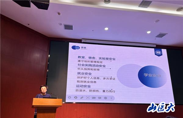 燕燕以“健康、安全、诚信、制度”4个关键词为研究生新生讲解了学校和学院对研究生日常管理的基本要求,重点强调了研究生的身心健康、人身财产安全、人际关系、遵纪守约、学术诚信等方面,为研究生的全面发展做好服务和保障。