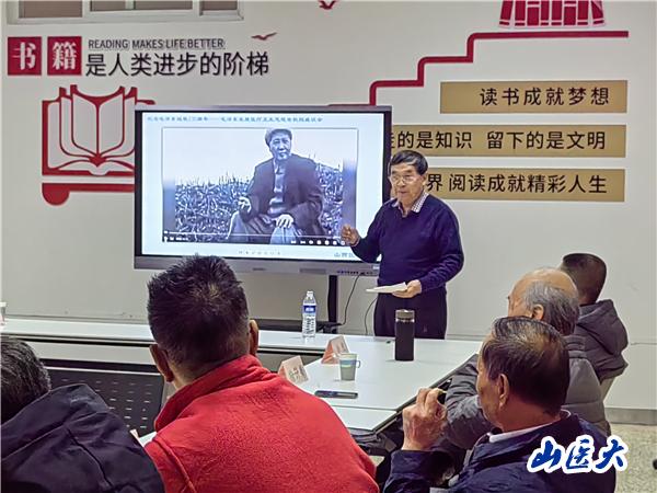程牛亮代表校教学督导委员会专家发言,他指出,毛泽东同志的一生是为人民谋利益的一生,他依靠人民、为了人民,一生谈论最多的就是人民,面对当时缺医少药的情况,毛泽东提出“中医药是伟大宝库,应挖掘提高”的观点。董海涛在发言中指出,习近平新时代中国特色社会主义思想,是对马克思列宁主义、毛泽东思想、邓小平理论、“三个代表”重要思想、科学发展观的继承和发展,是马克思主义中国化最新成果。徐计秀作了《毛泽东思想与发展医疗卫生的理论与实践》报告,围绕世界卫生组织对人人享有基本医疗保健的要求、建党百年来实现人人享有基本医疗保健的中国道路、毛泽东同志与新中国医疗卫生工作等进行了阐述。曲成毅表示,中华人民共和国成立后,毛泽东同志高度重视卫生健康体系建设,自己年轻时将所学医疗知识全面运用到实践中去,体验生动深刻,新时代的青年学子也要注重到实践中去学习、去提高。