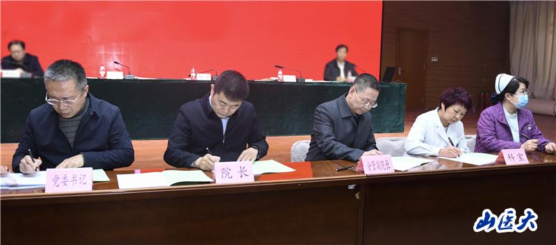 会上,院党委书记、院长、分管副院长分别与医院急诊科、药学部、科技处、后勤管理处等代表科室的科主任、党支部书记、护士长签订了2024年度安全责任书。其他科室的签订工作在会后由保卫科安排有序完成。