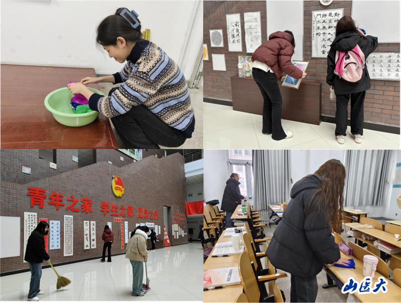 冒着皑皑白雪,60多名学生团员分片划区,包干到位,先后来到学校北门,认真清扫地面尘土,精心擦拭门匾积灰;在大学生活动中心、在教室,同学们不怕冷、不怕累,一边仔细清扫,一边分享劳动收获。大家纷纷表示,奉献是一种快乐,更是一种力量,能够激励我们不断前行。作为医学生,一定要在学习上能吃苦,在工作上能奉献,用心守护校园,为实现中华民族伟大复兴的中国梦贡献自己的力量。