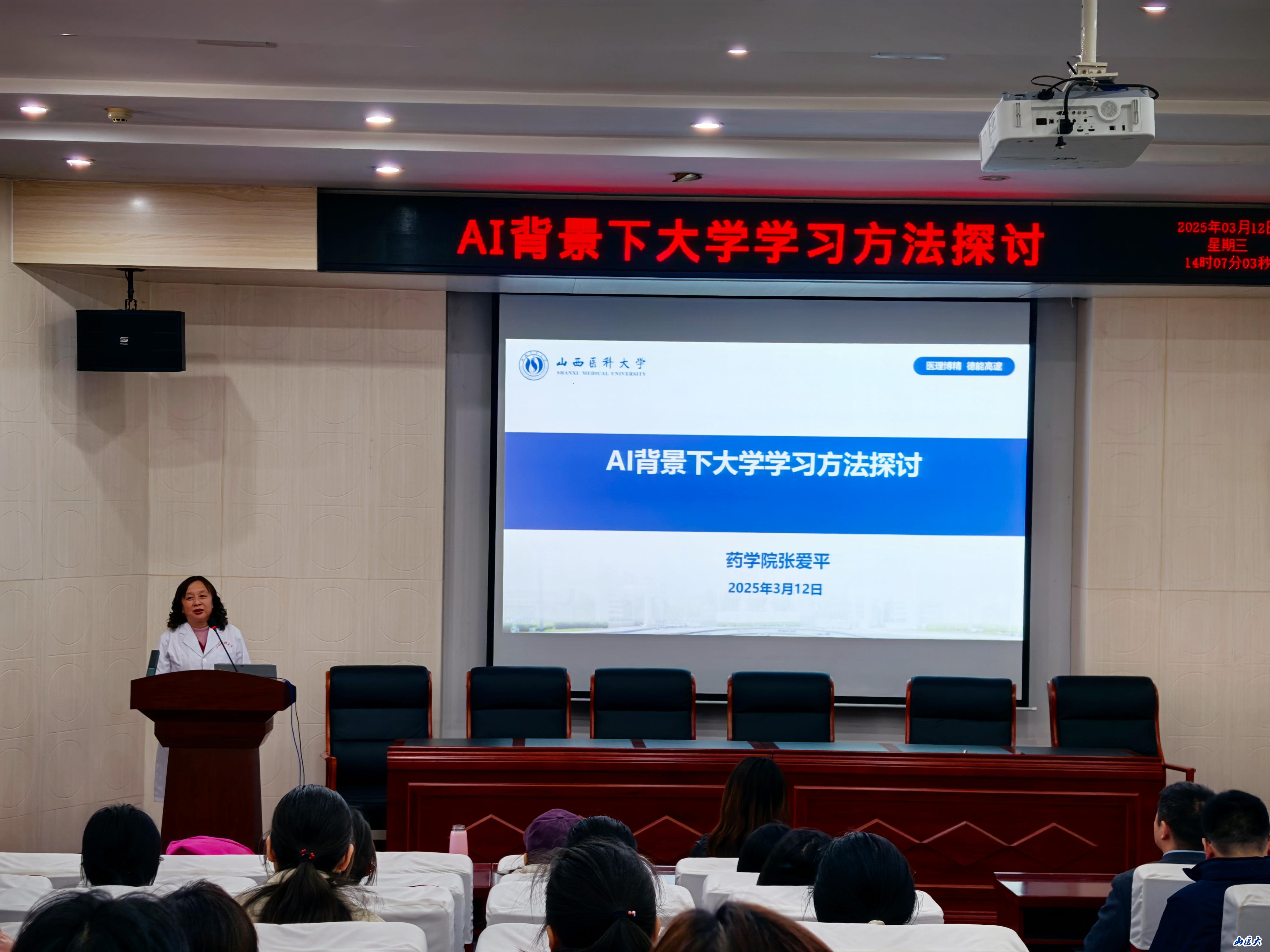 3月12日下午,我校药学院在中都校区举办了“师生同行 启航成长”导师进毓秀社区系列讲座(四)——“AI背景下大学学习方法探讨”。本次讲座由山西省教学成果一等奖、山西省高校教学名师、药学院张爱平教授主讲。学校网络中心主任马振中,药学院党委副书记童玲,毓慧A楼层长代表、药学院副院长李云兰,药学院分团委书记赵子瑞,药学院辅导员老师姜敏、王虹丹,以及百余名学生代表参加。讲座由药学院研究生党支部书记、宿舍导师代表魏贝主持。