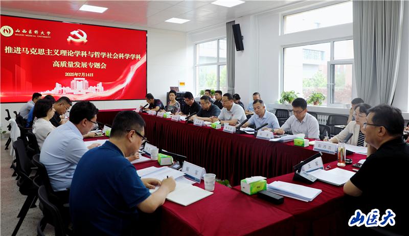 会议强调,要提高站位,深刻理解马克思理论学科等哲学社会科学学科对学校发展的重要意义。学校医学学科需要有厚基础、宽口径的多学科支撑,繁荣发展马克思主义理论学科等哲学社会科学学科,是实现学校高质量发展的战略基石。要找准定位,明确马克思理论学科等哲学社会科学学科高质量发展的路径,即坚持为党育人为国育才,坚持立德树人根本任务,坚持“强医兴医”的特色发展道路。要多措并举,推进马克思理论学科等哲学社会学科与医学学科共同高质量发展。面向未来,要以更大决心、更实举措,建强医科、优化理工、繁荣社科、促进交叉,开创马克思理论学科等哲学社会科学学科高质量发展新局面,确保学科建设方向与国家战略目标、区域经济社会发展需求、学校办学定位高度契合,为培养担当民族复兴大任、护佑人民健康的新时代卓越医学人才作出更大贡献!